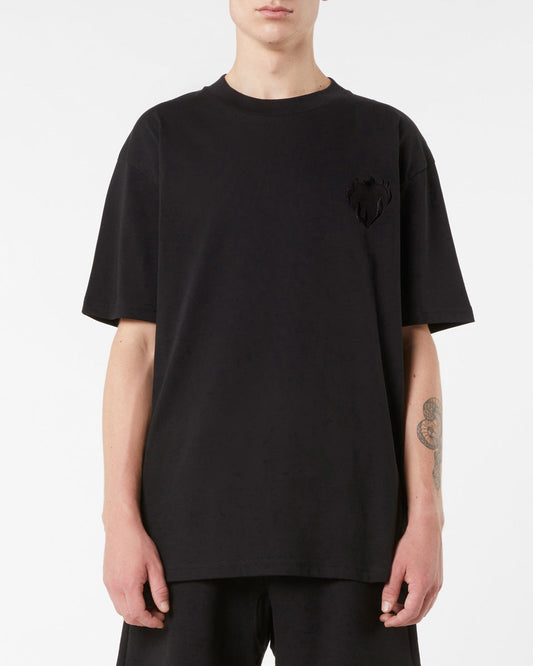 In offertaBLACK T-SHIRT WITH EMBROIDERED FLAMING HEART