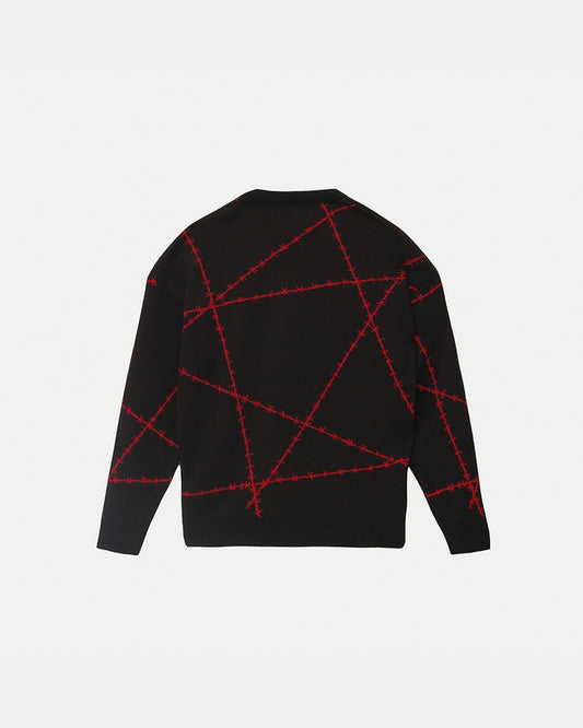 In offertaBLACK SWEATER WITH RED BARBED WIRE JACQUARD