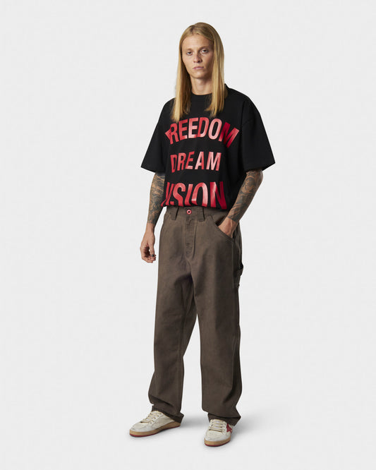 COLD WASH T-SHIRT WITH FREEDOM PRINT ON FRONT AND METAL LABEL