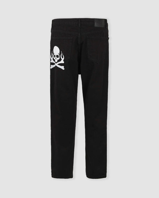 In offertaSTONE WASH BLACK PANT WITH EMBROIDERED FLAME