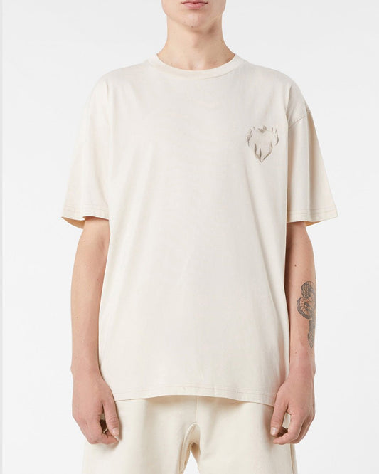 In offertaSAND T-SHIRT WITH EMBROIDERED FLAMING HEART