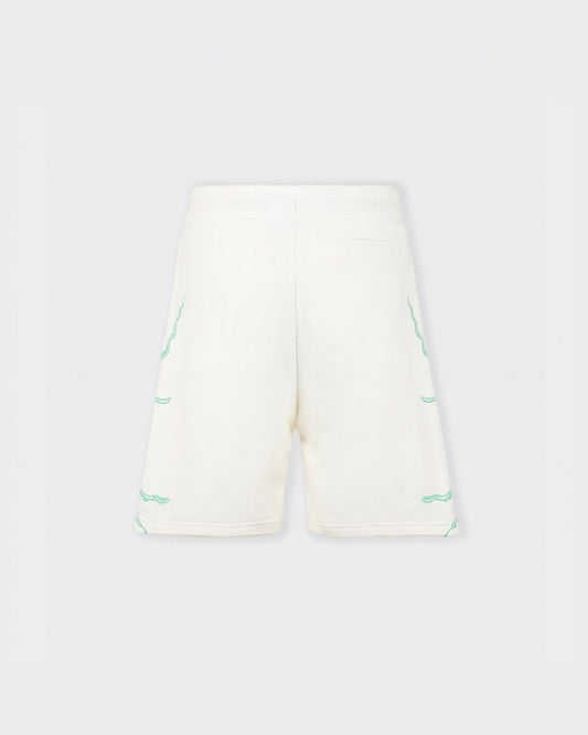 WHITE SHORTS WITH LATERAL GREENLIGHTNING PRINT AND EMBROIDERY GOTHIC LOGO