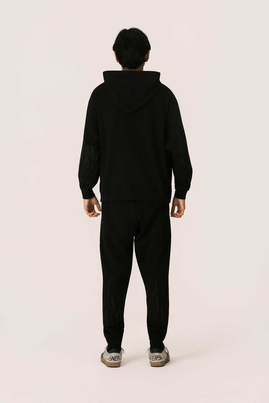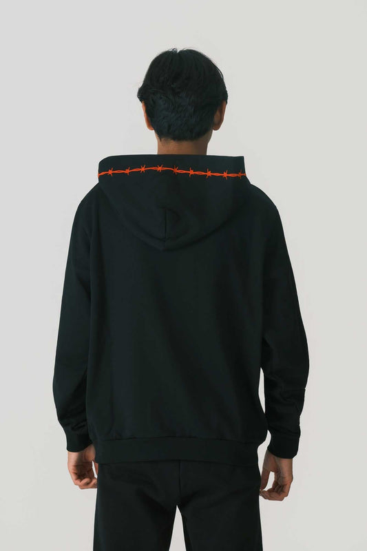 BLACK HOODIE WITH RED EMBROIDERED BARBED WIRE