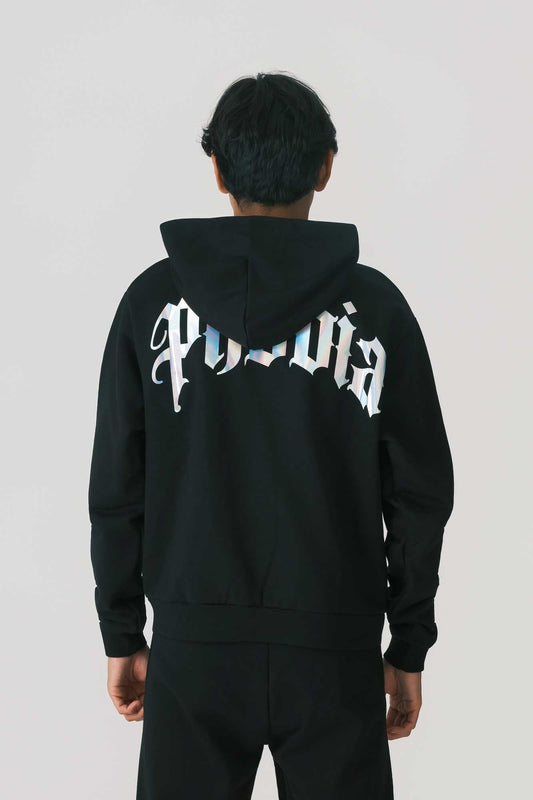 BLACK HOODIE WITH FRONT AND BACK REFLECTIVE LIGHTNING