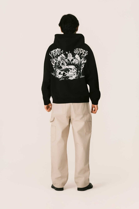 BLACK HOODIE WITH FRONT LOGO PRINT AND BACK SKULL PRINT