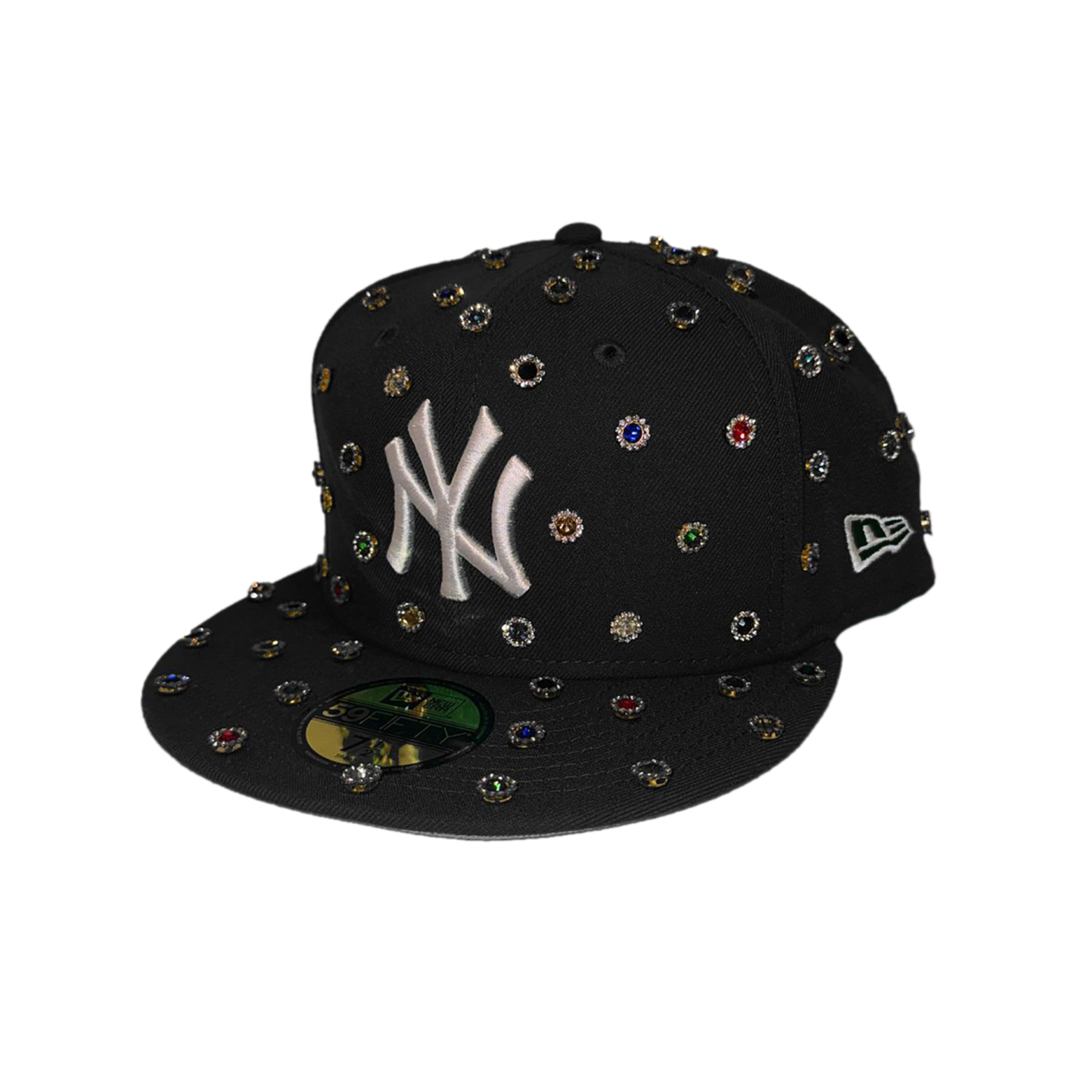 Base total black New Era 59FIFTY con logo Yankees argento, impreziosita da gemme incastonate che sembrano stelle su un cielo notturno. L’universo del drip ti gira attorno.